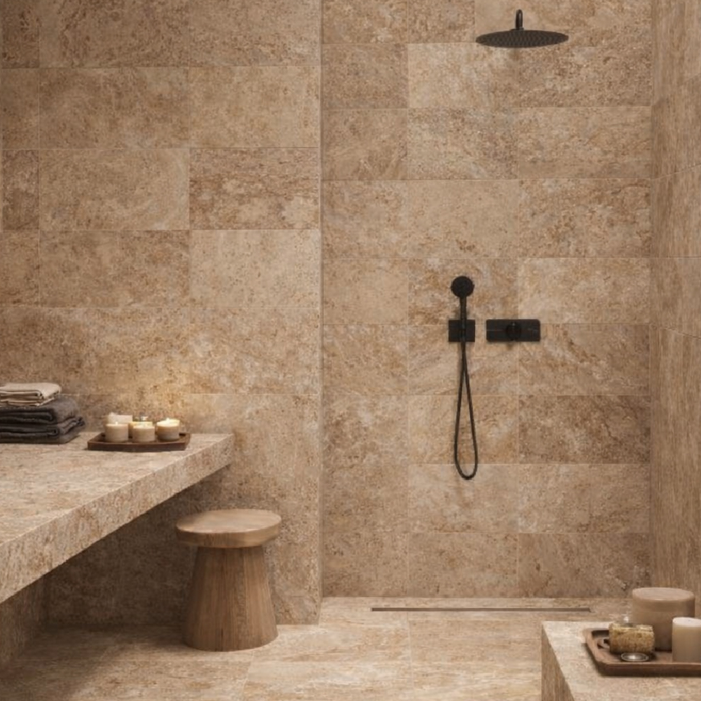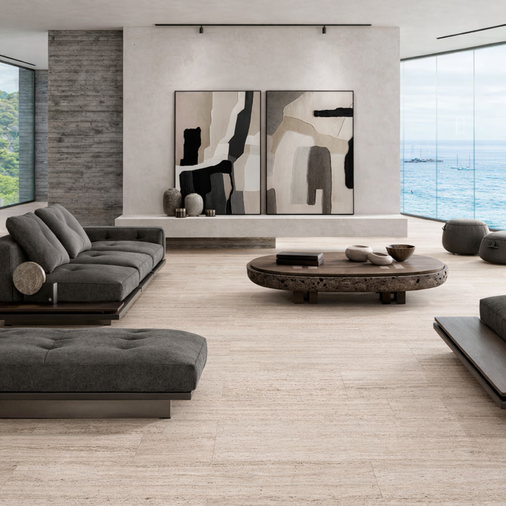 Estéticamente, el travertino transmite calidez, elegancia y naturalidad. Sus tonos suaves —beige, crema y arena— generan ambientes luminosos y sofisticados. Cada pieza es única, con vetas y cavidades que le dan identidad propia, logrando espacios con carácter, lujo y una conexión directa con la naturaleza.